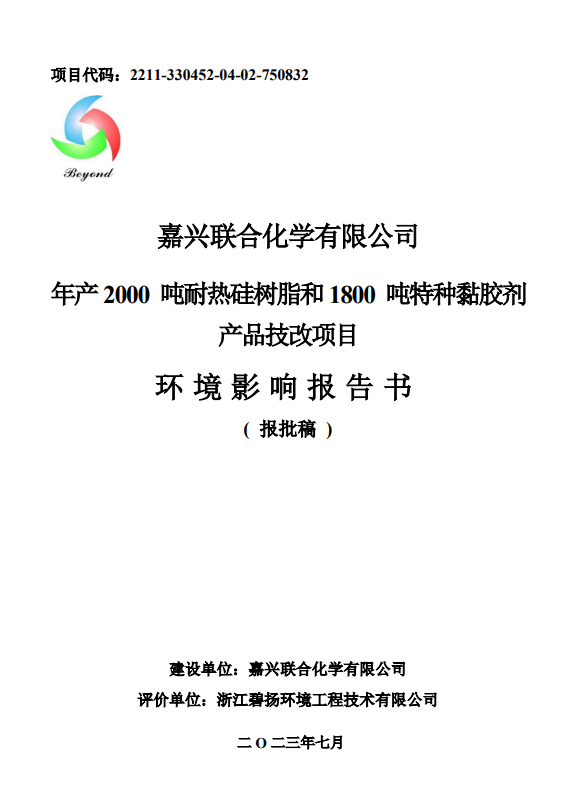 嘉興聯(lián)合化學(xué)有限公司年產(chǎn)2000 噸耐熱硅樹(shù)脂和1800 噸特種黏膠劑產(chǎn)品技改項(xiàng)目-環(huán)評(píng)公示稿
